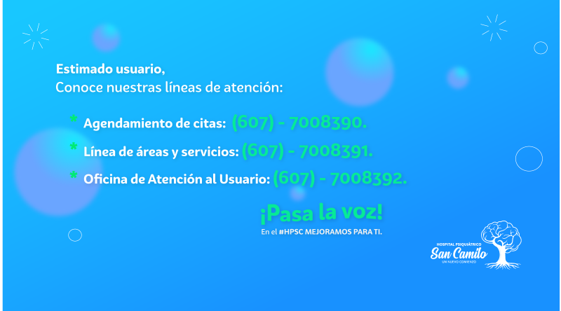 En la ESE Hospital Psiquiátrico San Camilo brindamos los mejores servicios en salud mental, por eso, contamos con los mejores aliados para atender sus necesidades en salud.
